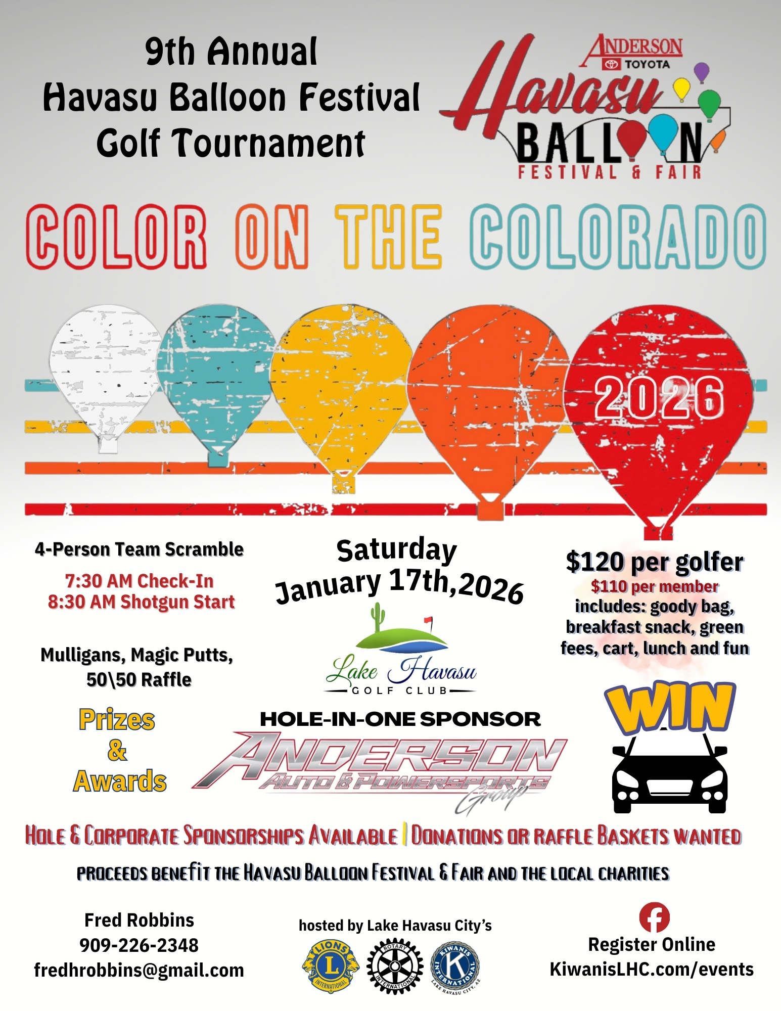 The Kiwanis Club of Lake Havasu City is proud to partner with the Havasu Balloon Festival & Fair, Rotary Club of Lake Havasu City, and the Lake Havasu City Lions Club to present the 9th Annual Havasu Balloon Festival Golf Tournament, happening Saturday, January 17th, 2026 at the beautiful Lake Havasu Golf Club – West Course.