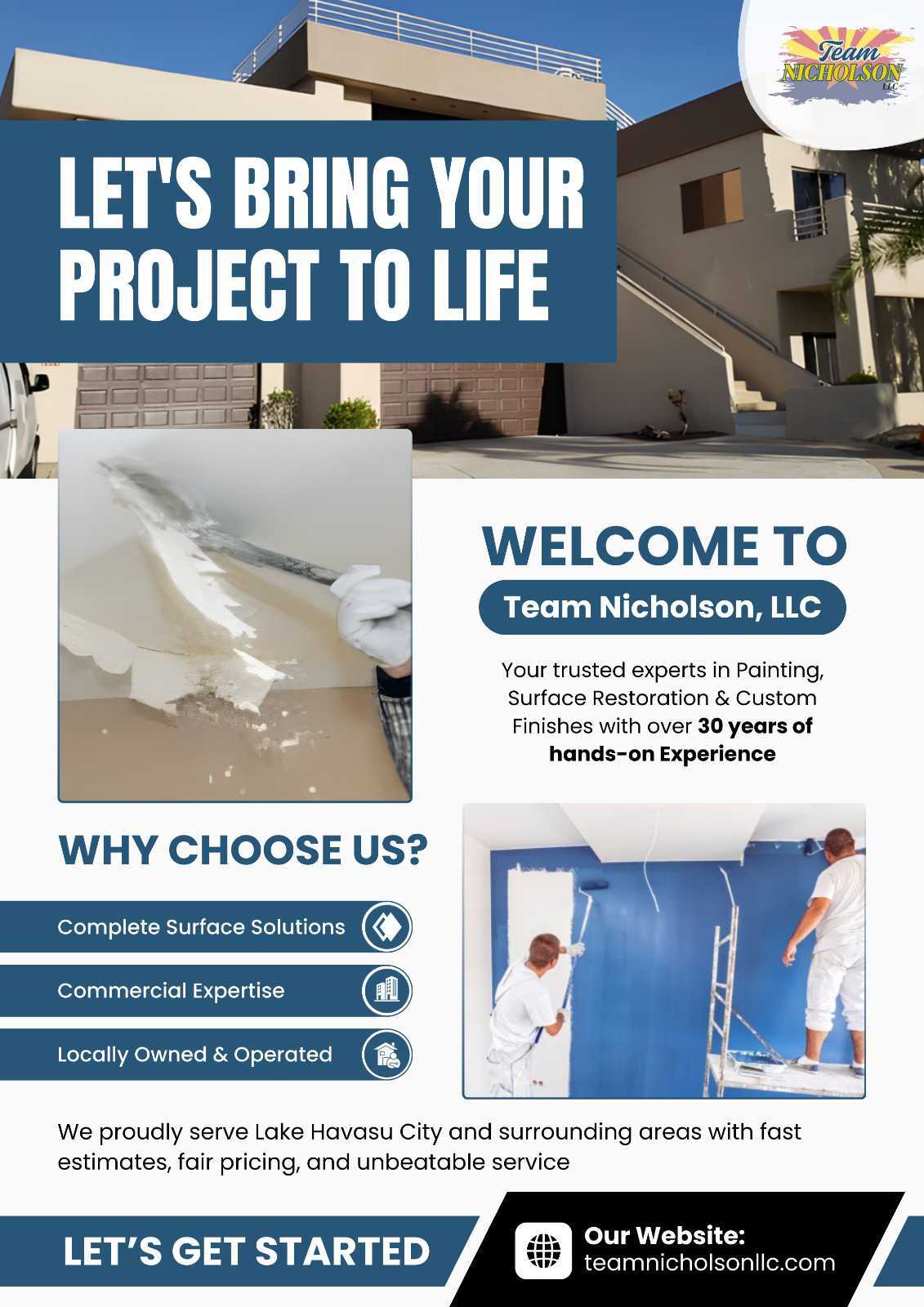 With more than 30 years of hands-on experience, Team Nicholson has built a strong reputation for quality workmanship, integrity, and attention to detail. Serving homeowners, businesses, and contractors throughout Lake Havasu City and surrounding areas, their work reflects a commitment to excellence and pride in every project they take on.